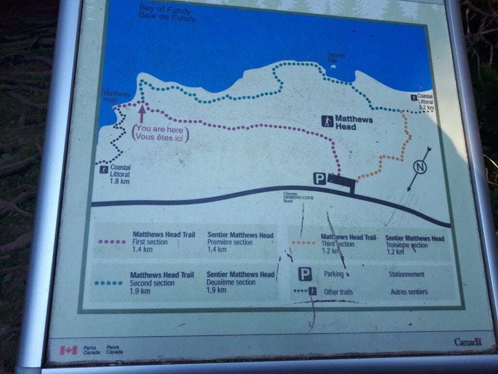 So, once again, instead of heading on a trip we planned a year or two in advance, we hiked at Fundy National Park and called our day “spontaneous.” Most years, we end up doing the same things in the same places, on the same old trails.
