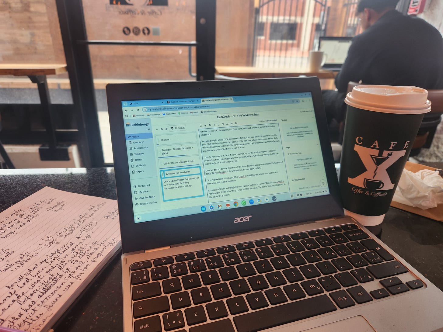 I’m just a few months into a novel - a prequel to The Widow & The Will, and it hasn’t been moving too quickly. A busy life is the common lament of many writers like me, busy-ness which is composed of a demanding job and a family and other social obligations. As of right now, I generally only work on my project on the weekends, and I like to do that in a café.